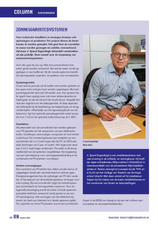 Met ingang van januari 2025 ben ik vaste columnist voor het vakblad Installateurszaken IZ. Mijn column richt zich op het maken van de beste installatiekeuzes en het voorkomen van fouten en
